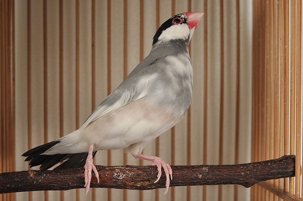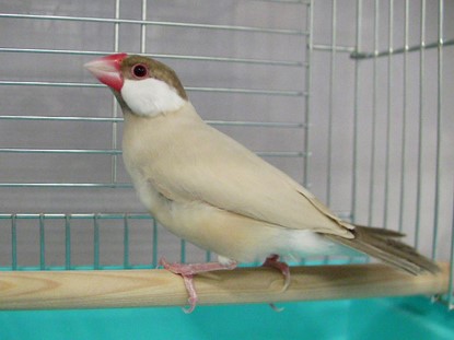 全身が白色で、クチバシが赤色であるめ、アイリングも映えて美しいカラーです。白ブンチョウは、明治時代初期に弥富において、突然変異から羽根の白い文鳥が生まれ、これを改良して固定されました。白ブンチョウは桜ブンチョウに対して優性とされていますが、桜ブンチョウ同士の交配から白ブンチョウが生まれることもあり、羽色の遺伝についてははっきりしない点が多いです。日本でつくりだされたことからJapanese Rice Birdとも呼ばれています。