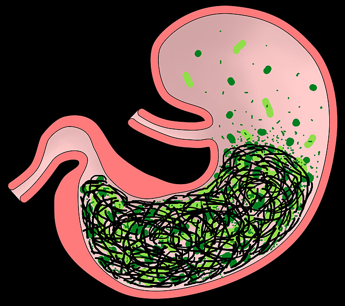 消化管の蠕動の低下は繊維質の不足あるいは一句食いによる停滞が考えられ。運動不足は蠕動を低下することが原因になります。そのため、消化器系をサポートする工夫として、水溶性・不溶性の食物繊維を多めに含んだペレットやサプリメントを与えることも一方法ですが、主食を牧草にしているウサギではこれが何よりも一番の対応策です。水分をとらせることも、消化管内の流動性を高めます。