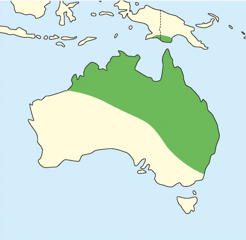 オーストラリア北東部からニューギニア南部(オーストラリアとニューギニアの固有種)