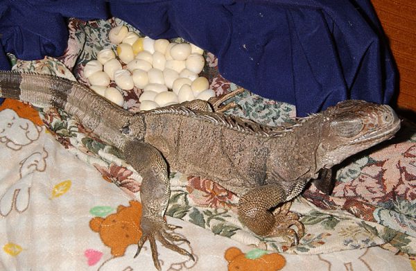 卵殻が形成された卵を持ったイグアナが無事に産卵させるために、産卵場所を設けます。不適切な産卵環境であると産卵できずに、卵塞を起こす可能性が高くなります。産卵する場所は具体的に産卵箱を使用し、トカゲでは箱の横に小さな入口を設け、湿度を保つために容器の半分くらいに湿らせたバーミキュライトか水苔などの床敷を産卵床として敷きます。産卵箱がダンボールなどで体の大きさに合わせて作ってあげるとよいです。
