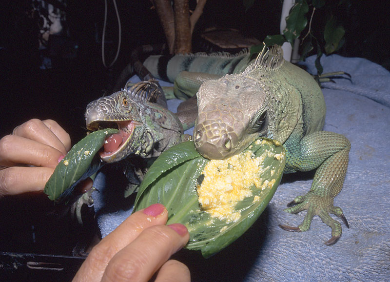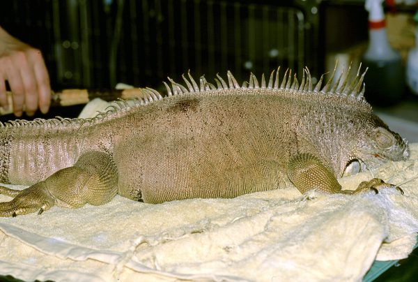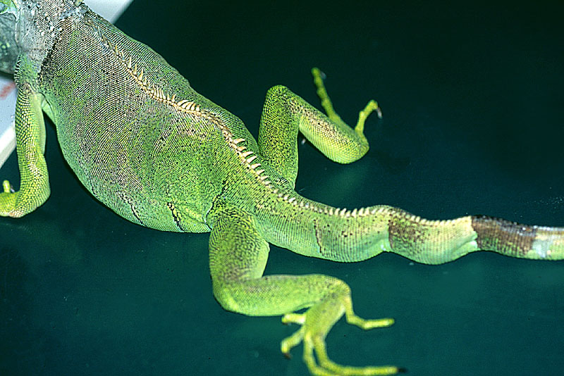 イグアナは成長が早く、2~3年で全長2m近くになります。その発育には十分なカルシウムとビタミンDが必要になります。カルシウムが少ないエサ、紫外線の不足により、成長不良、骨の菲薄や変形、骨折するような代謝性骨疾患(MBD:Metabolic bone disease)が起こります。骨