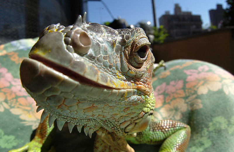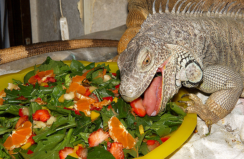 イグアナはかじって飲み込むというよりは、丸のみをすることが多いです。放す部屋の中では、口の中に入るサイズの異物はすべて取り除きましょう。