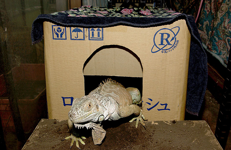 大きく成長したイグアナはケージ飼育ではなく、部屋の中で放し飼いになるでしょう。部屋中をうろうろとし、部屋に落ちているプラスチックやビニール片、ネジなどの異物を飲み込んでしまうことがあります(消化管内異物)。異物が胃腸の中に停滞すると食欲不振や体重減少がみられ、腸閉塞が起こると詰まると腹痛が見られ、ぐったりします。