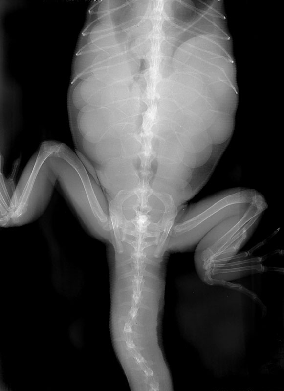 卵殻はX線にうつりますが、トカゲの卵殻は薄いのが普通なので明確にはうつりません。