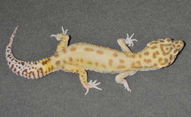 通常、レオパのヒョウモントカゲモドキにはその特徴である黒い豹紋が存在します