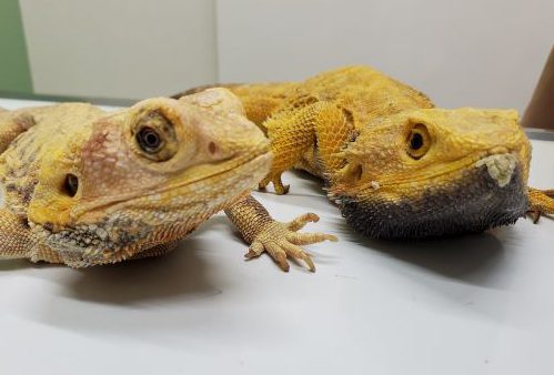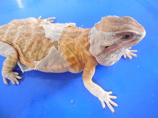 フトアゴヒゲトカゲは、脱皮の前に体が白くなり、各部位が所々にポロポロと脱皮します(部位脱皮)。