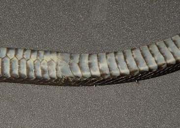 危険を感じたり、威嚇の際には、尾を辺りに打ち付けて、独特の青臭い匂いを放ちます。シマヘビやジムグリも匂いますが、アオダイショウが最も臭いといわれています。この臭いの原因は尾の付け根部分にある肛門腺(臭腺)から出る褐色の液体です。アオダイショウの分泌液はかなり独特な臭いで、刺激臭というより、悪臭や異臭と言った方が適しています。
