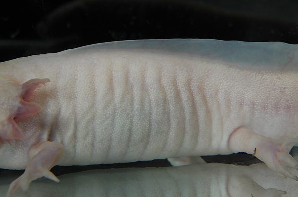 メキシコサラマンダーは驚異的な再生能力を持ち、四肢や尾、鰓のみならず損傷した臓器までも再生します。このことから採取され、実験動物として長く研究されています。