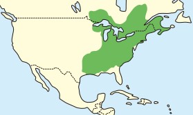 カナダのノバスコシア半島からオンタリオ州中部、アメリカのジョージア州、ルイジアナ州、テキサス州東部