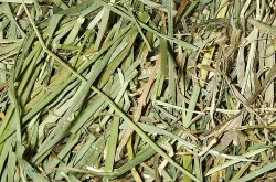 牧草の餌には、大きく分けて生牧草と乾牧草があります。生牧草は刈り取ったばかりの新鮮な牧草で、水分含有量は65~85%になり〔須藤 1981〕、野菜好きの動物ならば嗜好性が高いでしょう。また、ビタミンAが豊富なために粘膜を強くする作用があり、くしゃみが多い (スナッフル)、軟便がちな動物に適しています。