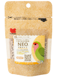 フィンチ類の食性を考え、米粉や動物性蛋白質(ミルワーム・カイコのさなぎ)を配合。粒タイプは約1ミリサイズでフィンチ類でも食べやすいサイズ