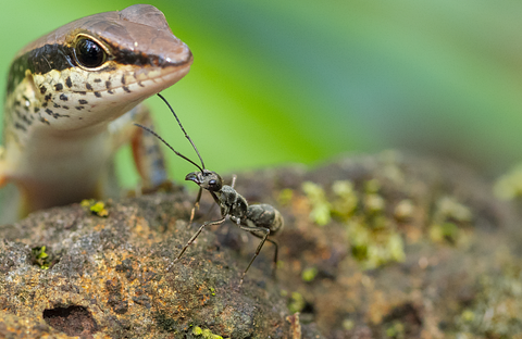 昆虫食のトカゲ類(ヒョウモントカゲモドキやフトアゴヒゲトカゲ等)では、ほぼ配合飼料のペレットの給餌による管理・繁殖に成功しています。トカゲではふやかしたペレットをピンセットでつかんで、目の前で動かして与えないといけないことがあります。トカゲ用配合飼料では半ねりタイプのチューブに入っている製品や、粉状になっているものを水で溶いて固まらせるゲル状タイプも販売されています。また、生体が販売されている時点で、妥当な配合飼料に餌付けされている場合も多いです。昆虫嫌いの飼い主には配合飼料で飼育ができることは好都合となります。また、昆虫類を常食にしていたトカゲなどは、それまでに与えていた生き餌を突然拒食を示すような事例も多く見られ、また生き餌が入手できなくなることもあり、普段から幅広い様々な食材を給餌するべきと言われています。その一つにペレットあるいは配合飼料がメニューに加わると栄養的に安心です。配合飼料は各爬虫類の嗜好性が高いと言われている昆虫や果物成分を配合されています。それでも食べない場合は、現在食している昆虫などにふやかした配合飼料を塗りつけたり、ペレットを粉にして昆虫にまぶすことで、味や匂いに慣れさせることから始めます。なお、爬虫類の餌付けの際、嗜好性の高い餌から与え始めるのと、その餌のみに固執が進む恐れもあり、餌の切り替えが難しいこともあります。なお、餌の切り替えは、幼若個体はより学習効果が高く、若い時に学習した「餌かどうか」の認識は、その個体の成長後にも大きく影響します。生き餌をケージ内にばらまくことで、トカゲはそれらを採食しますので、次にピンセットから同じ生き餌、その後、死んだもの(乾燥や冷凍餌)をピンセットで目の前に動かして生き餌のようにして反応させます。最後に配合飼料を塗りつけた生き餌や乾燥餌をピンセットで与えることで成功すると思います。なお、これらの過程は空腹状態で行うのが重要です。