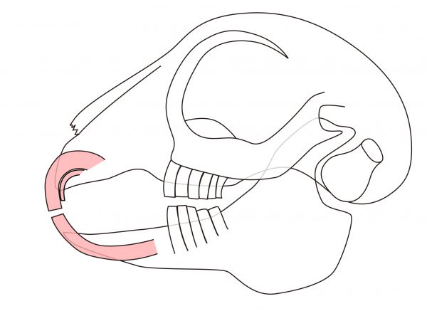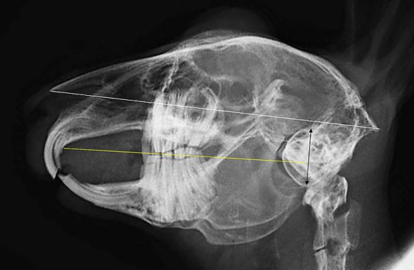 短頭種は頭蓋骨の形状が野生のウサギと異なり、下顎過長症や下顎突出症と呼ばれる下顎が前方に突出する病態が有名です。本来は上顎の歯隙が成長しない遺伝的素因が起こることから、結果的に下顎が前方に突出します。