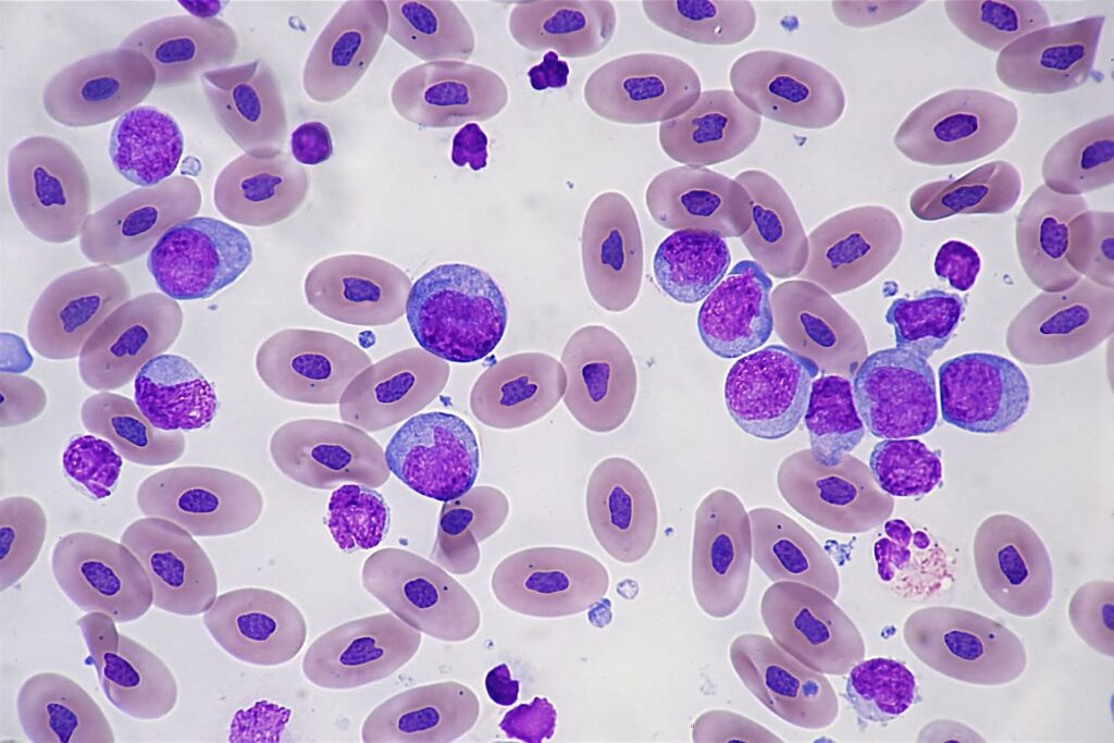 • 異常な顆粒球: 高いN:C比、核の詳細を不明瞭にする多数の異染性顆粒が見られます。