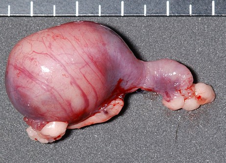 子宮内腔に漿液が貯留し、子宮が拡大します。