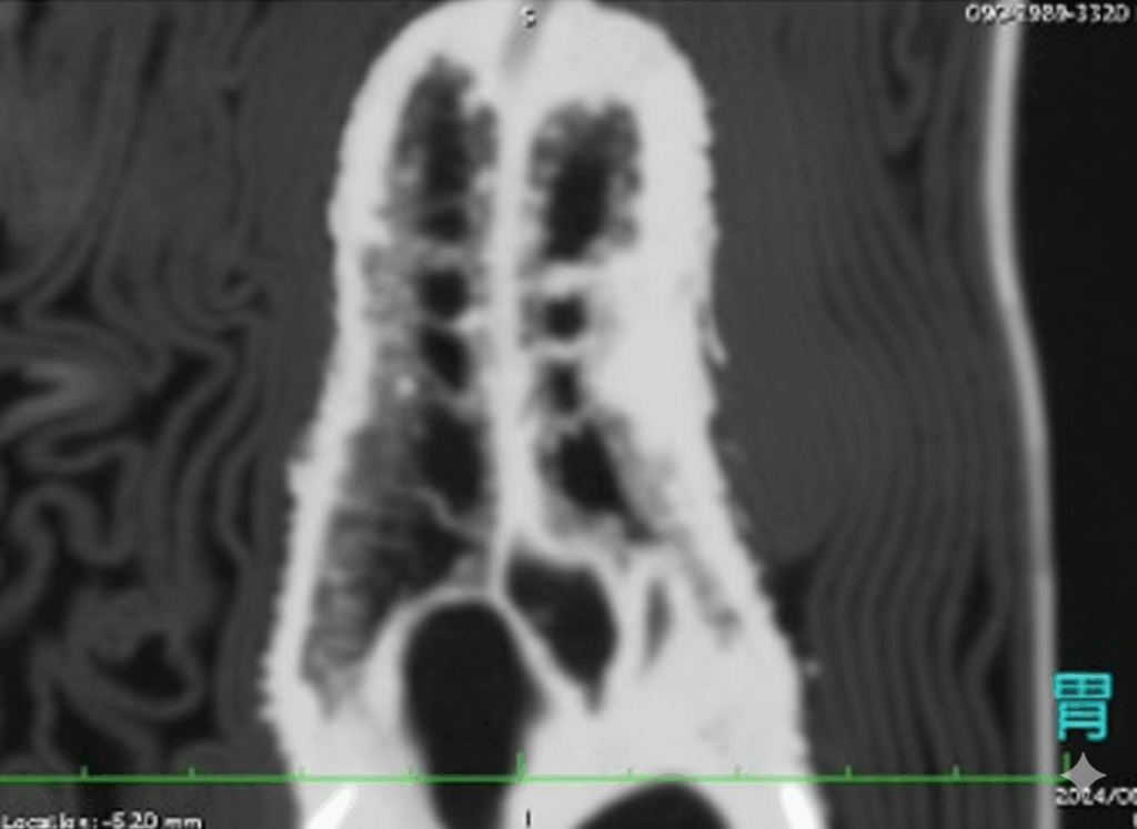 CT検査は、X線では評価が難しい初期病変や、肺実質の詳細な病変(例:微小な膿瘍、真菌症の病巣)を特定する上で、極めて優れた診断情報を提供します。