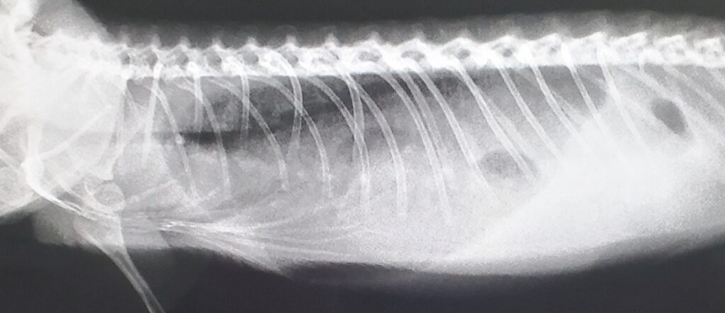 フトアゴヒゲトカゲは飼育下では特に呼吸器系の疾患、中でも肺炎に罹患しやすいことが知られています。爬虫類医学において、肺炎は単なる局所感染ではなく、基礎的な免疫機能の低下や全身性のストレスに起因する日和見感染症として捉えられています。しかしながら、トカゲの肺炎は、沈鬱が主にみられ、呼吸器症状が軽微なため、画像診断で初めて診断されることも珍しくはないです。