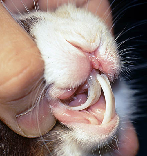 罹患個体は生後3週齢から発見可能です。歯列不正の遺伝子検査は存在しないため、キャリア動物を特定することは現在不可能です。原因となる遺伝子は特定されていません。