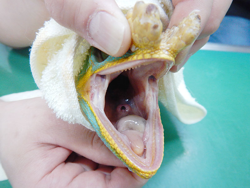 カメレオンには横隔膜が存在しないため、腹部ではなく体腔と呼ばれます。触診は優しく行う必要があります。