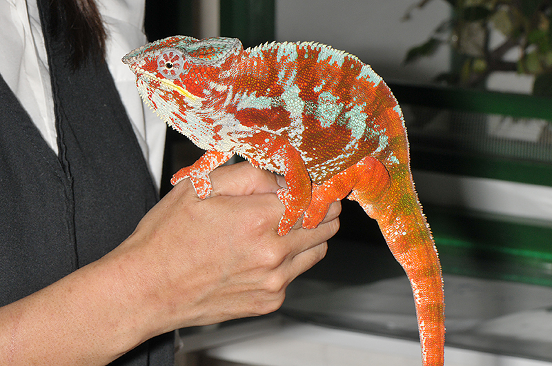 カメレオンを物理的に保定する際、最も重要な原則は閉じ込める(Hold)のではなく止まらせる(Perch)ことです。カメレオンは自らの自由が制限されることに強いストレスを感じ、パニックに陥ると自傷や咬傷のリスクが高まりmす。