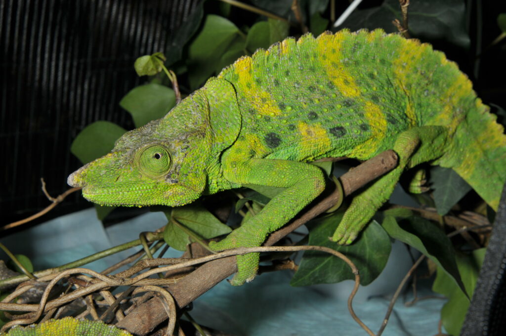 カメレオンはパッチ状に脱皮するが、指先や尾の先端に残った古い皮膚は成長に伴って血流を阻害し、末梢の壊死を引き起こす恐れがあります。
