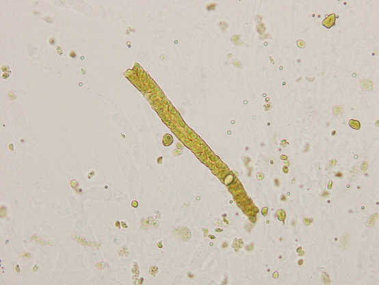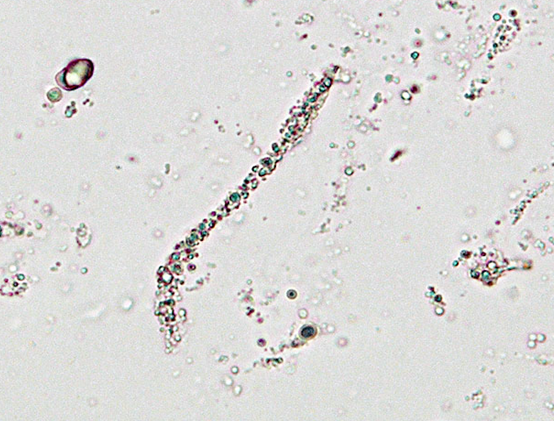 最も大きく、不規則な形をしています。遠位尿道や生殖器、あるいは採尿時の環境(床など)からの混入物であり、臨床的意義は限定的です。