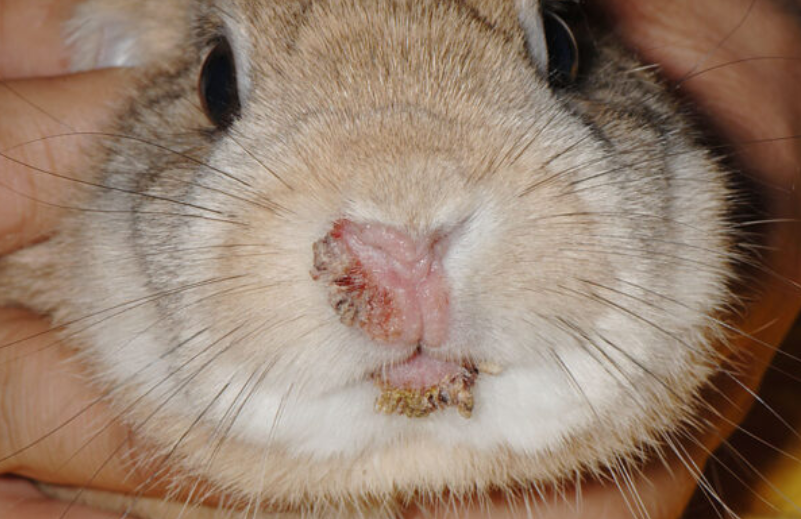 環境中での菌の生存能力は極めて低いため、汚染された床敷きや器具を介した間接感染のリスクは、直接接触に比べれば低いものの、新鮮な滲出液が付着した直後の器具等を介した伝播の可能性は完全には否定できません。主に交尾感染でうつりますが、幼体は母ウサギとの接触や産道の中で感染します。感染しているウサギ同士での病変部への接触でもうつります。
