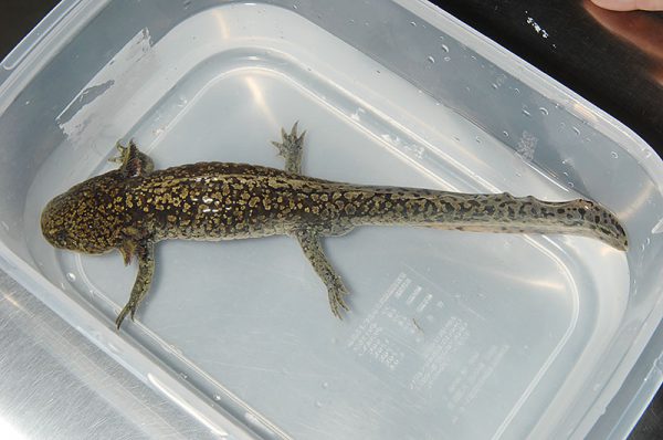 イモリやサンショウウオなどの有尾両生類はカエルの ペルビックパッチのような存在は詳しく研究されていないので、全身の薬浴を行っています。排泄物や餌のカスなどが混ざるので、カエルと同様に薬浴の液剤は毎日交換します。