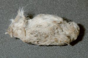 猛禽類の餌はマウス・ウズラ・ヒヨコなどで、骨、被毛ならびに羽根、繊維質など植物の消化できない部分など、全て丸ごと捕食するために、消化することが出来ない部分をぺリットとして吐き出す必要があります。ペリットの表面は被毛や羽毛、食物繊維などの柔らかいもので包まれていることが多いです。