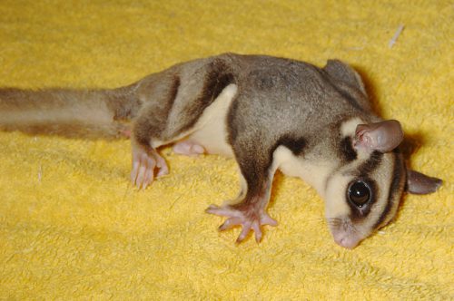 四肢が変形して、上手く歩けなくなり、這いつくばって歩くようになります。骨盤が変形すると、糞が出なくなり、便秘で苦しむようになります。これはある程度フクロモモンガが大きく成長してから見られることが多いです。カルシウム欠乏は、骨だけでなく、神経ならびに筋肉にも影響し、手足が震えたり、ピクピクと筋肉が動く症状がみられます。この状態になると死亡する可能性が高くなります。