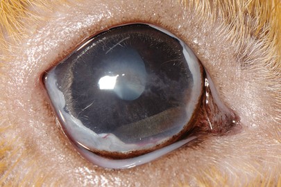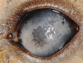 モルモットでは角膜にカルシウムが沈着することがあります。慢性角膜炎に移行すると血管新生と同時に脂質やコレステロール、カルシウムの異常な蓄積によって、角膜が結晶状沈着物で覆われてきます。