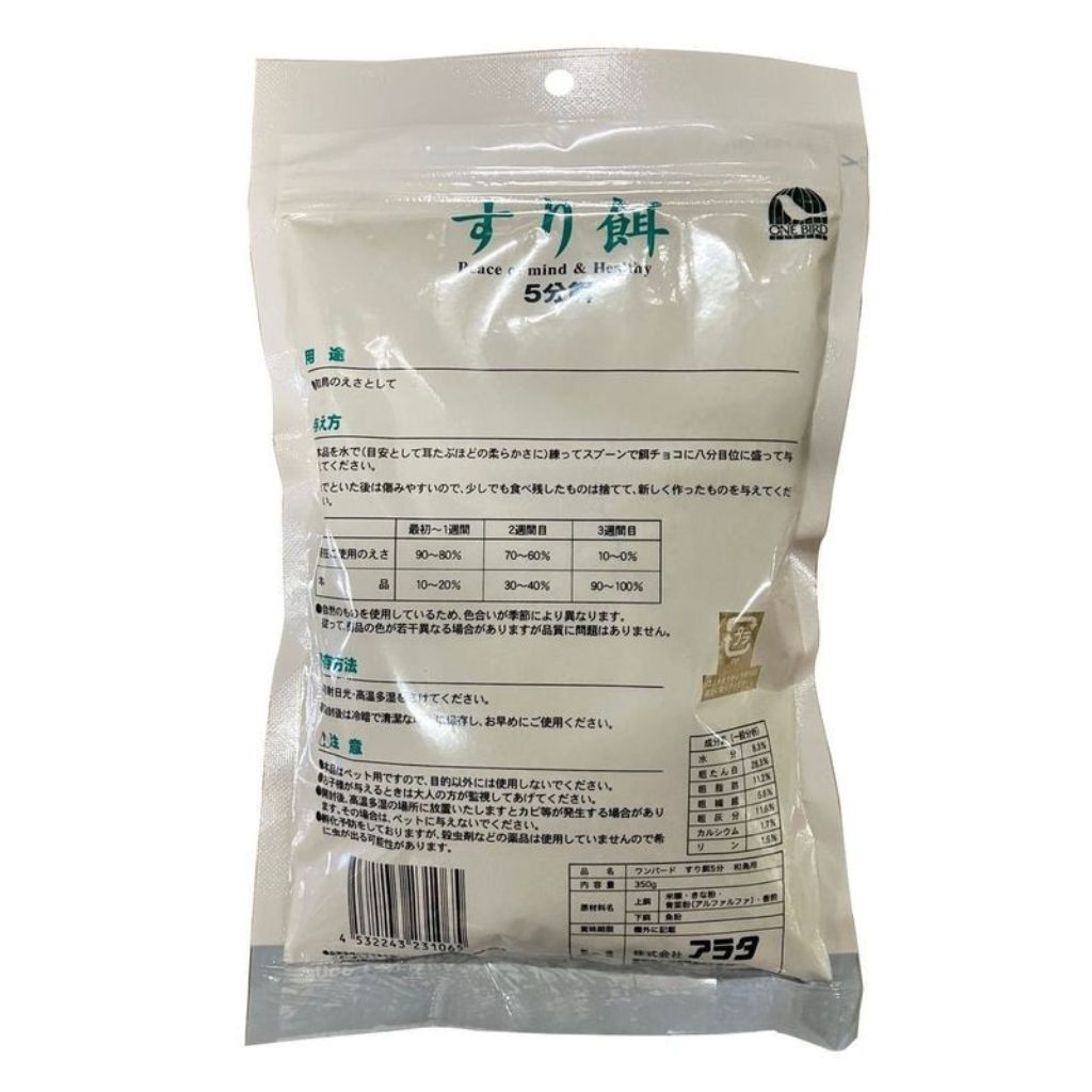 【 アラタ】ワンバード すり餌 5分 350g¥339 (税込) 最高級 【 アラタ】ワンバード すり餌 5分 350g個 お買い物カゴに追加 商品コード: 4532243231065 カテゴリー: 鳥フード・おやつ ブランド: アラタ 説明 説明 和鳥のことを考えて、丹念に配合しました。 【給与方法】 本品を水で練ってスプーンで餌チョコに八分目位に盛って与えてください 【原産国】 日本 【注意事項】 ペット専用ですのでそれ以外には使用しないで下さい。 関連商品 【 アラタ】アシストONE あわ玉 180g ¥278 (税込) お買い物カゴに追加 【 アラタ】エブリバード 文鳥 630g ¥498 (税込) お買い物カゴに追加 【イースター】インコセレクション トータルペレット300g ¥1,067 (税込) お買い物カゴに追加 【イースター】インコセレクション バイタルパウダー150g ¥858 (税込) お買い物カゴに追加 【 アラタ】アシストONE カナリアシード 200g ¥278 (税込) お買い物カゴに追加 【 ペットプロジャパン】ペットプロ 小鳥のごはん 皮付 1kg ¥781 (税込) お買い物カゴに追加