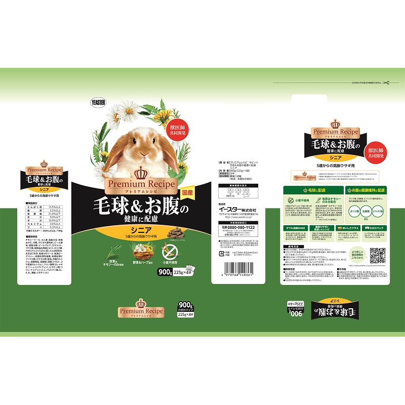 ・獣医師と共同開発した、毛球とお腹の健康維持に集中配慮されたウサギ用の総合栄養食です。