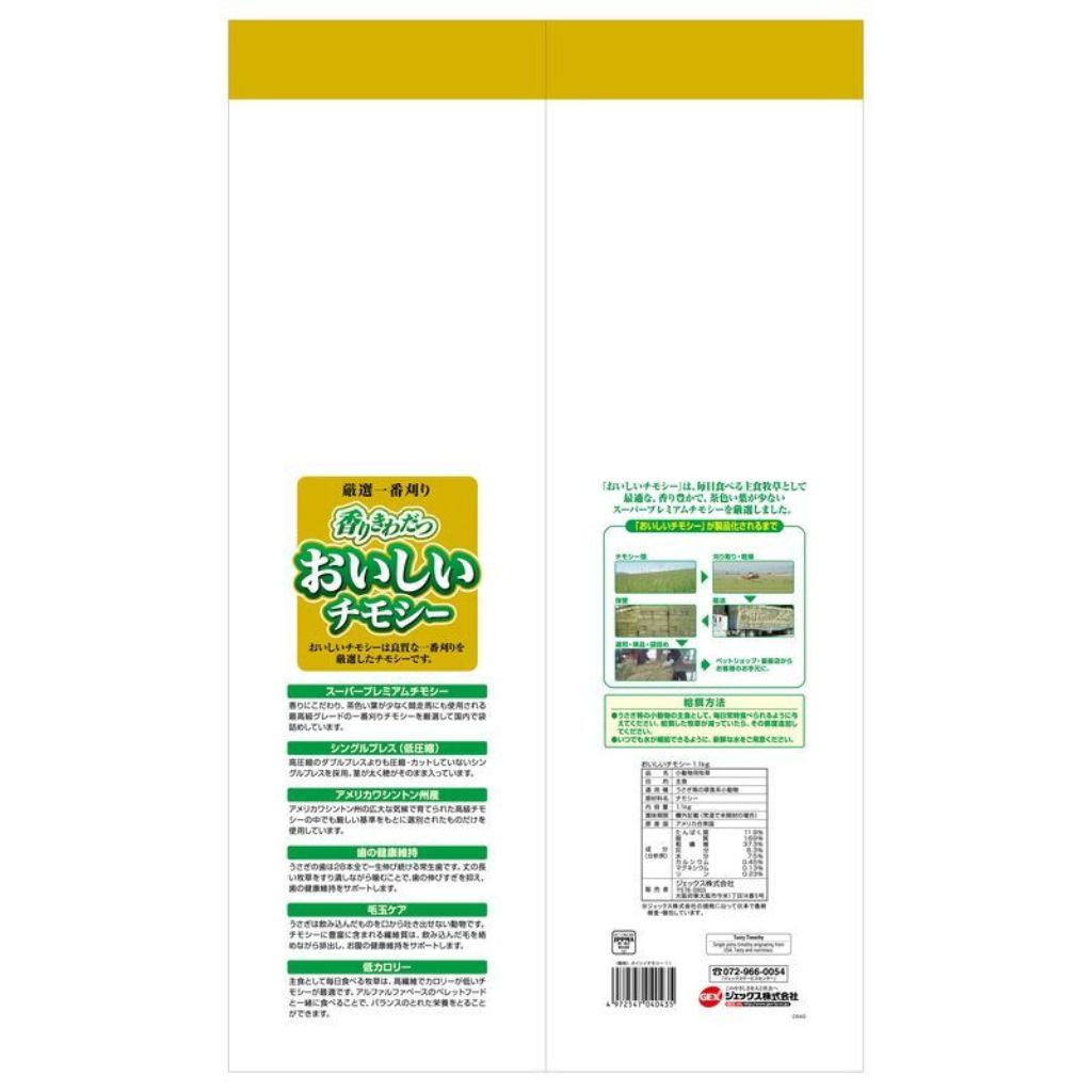 ■スーパープレミアムチモシー香りにこだわり、茶色い葉が少なく競走馬にも使用される最高級グレードの一番刈りチモシーを厳選して国内で袋詰めしています。