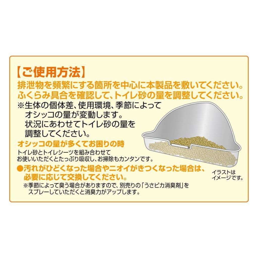 ※生体の個体差、使用環境、季節によってオシッコの量が変動します。状況にあわせてトイレ砂の量を調整してください。■オシッコの量が多くてお困りのときトイレ砂とトイレシーツを組み合わせてお使いいただくとたっぷり吸収し、お掃除も簡単です。■ご使用後の処理方法