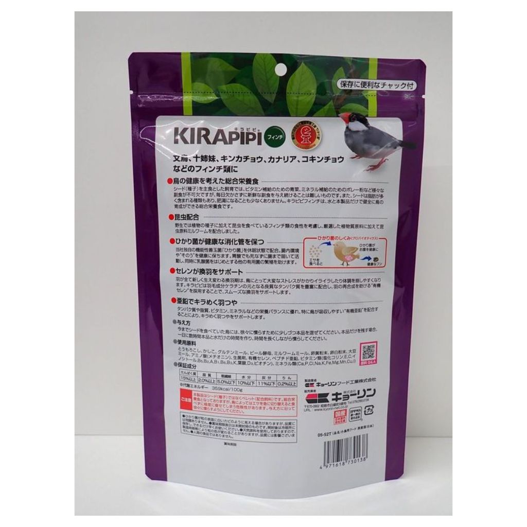 キラピピフィンチは、水と本製品だけで健全に鳥の育成ができる総合栄養食です。