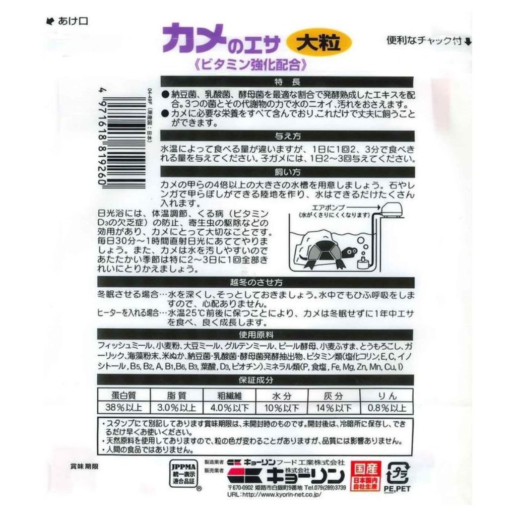 教材カメのエサは、カメの健全な成長のためにビタミンを強化配合しています。