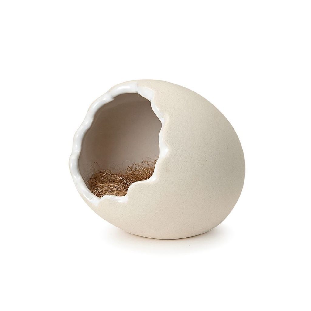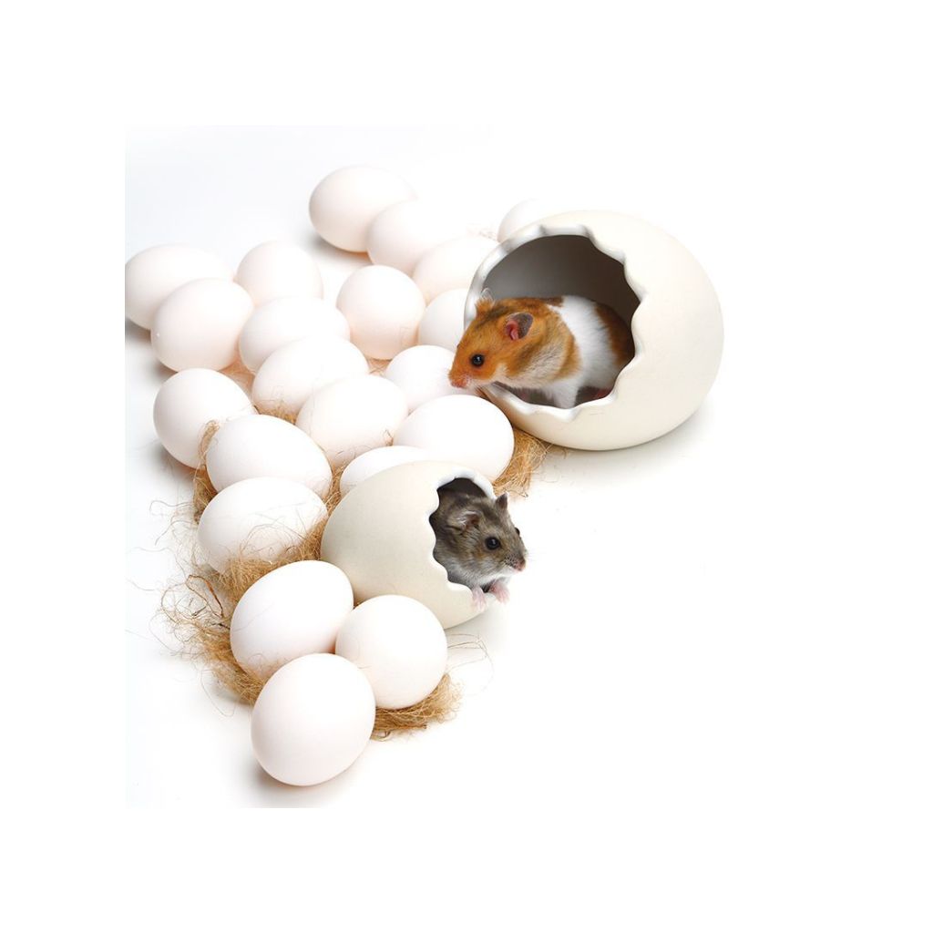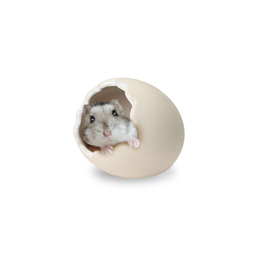 ・ハムスターが顔を出すと卵かた生まれたように見える陶器製ハウスです。