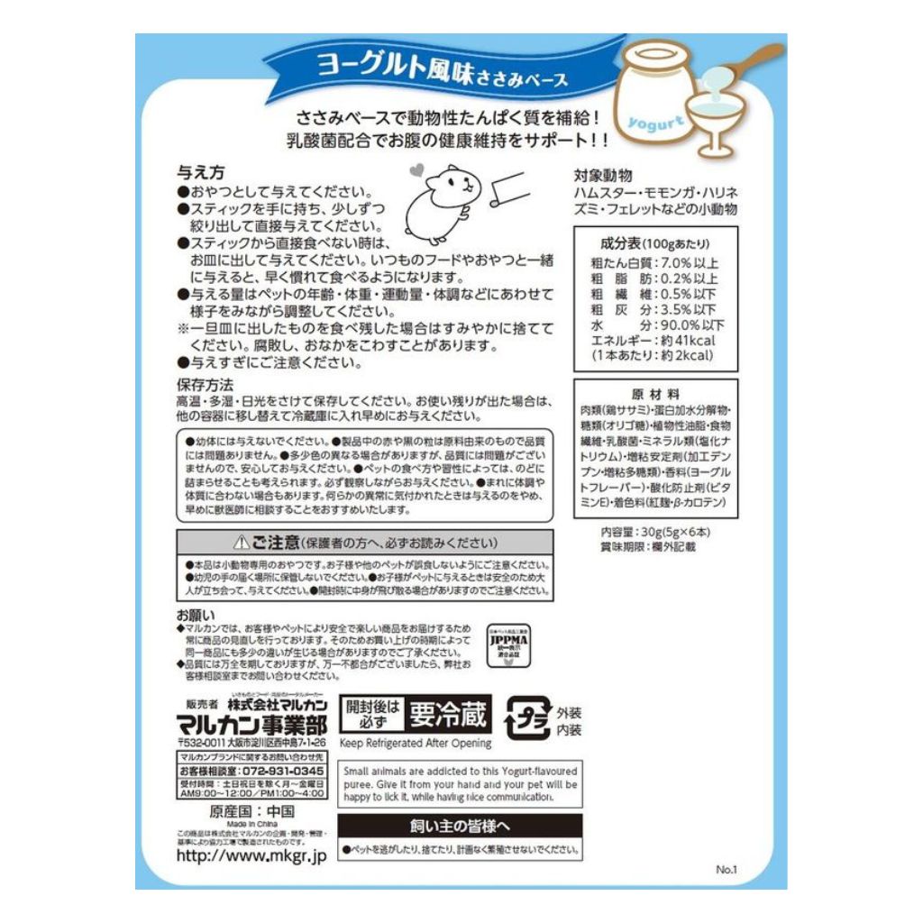 ささみベースで動物性たんぱく質を補給!乳酸菌配合でおなかの健康維持をサポート!やわらかいピューレタイプのコミュニケーションおやつです。