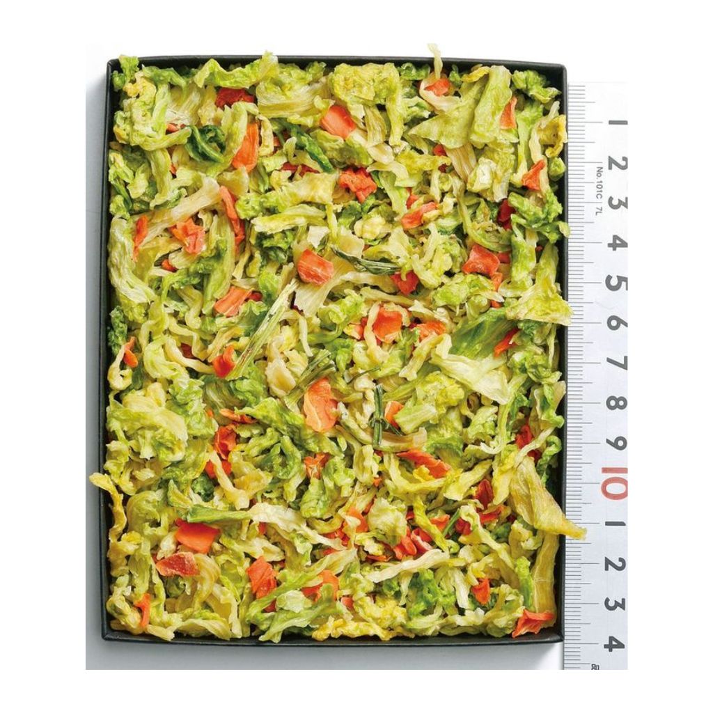 ・乾燥野菜の白い粉のようなものが見られる場合がありますが、原料由来のデンプンや糖分が乾燥によって出てきたものですので安心して与えてください。