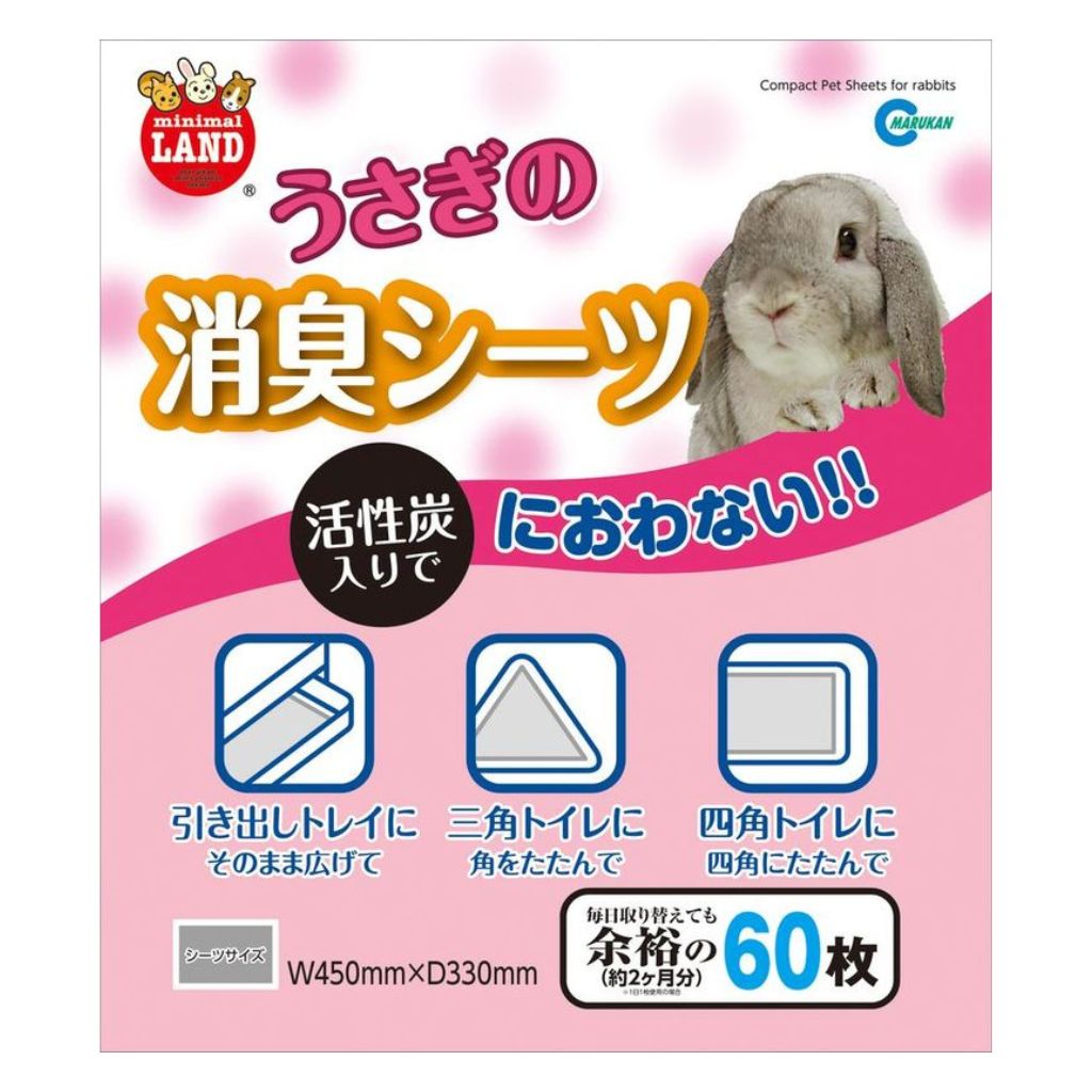 【マルカン】うさぎの消臭シーツ 60枚¥1,398 (税込) 活性炭入でにおわない。 【マルカン】うさぎの消臭シーツ 60枚個 お買い物カゴに追加 商品コード: 4906456556992 カテゴリー: 小動物用トイレ用品 ブランド: マルカン 説明 説明 トレイにもトイレにも使えるサイズの消臭シーツです。 高頻度の取り替えにも対応する60枚入りパック。 【素材】高分子ポリマー、不織布 【原産国】 中国 【対象動物】 うさぎ・チンチラなど 関連商品 【ジェックス】三角ラビレット消臭セット ミルキーホワイト ¥1,280 (税込) お買い物カゴに追加 【三晃商会】吸って固まる ミニクリーン 800g ¥298 (税込) お買い物カゴに追加 【ジェックス】正方形ラビレット消臭セット ミルキーホワイト ¥1,080 (税込) お買い物カゴに追加 【三晃商会】瞬間消臭ウッドリター ライト 7L ¥889 (税込) お買い物カゴに追加 【ジェックス】四角ラビレット ミルキーホワイト ¥1,048 (税込) お買い物カゴに追加 【三晃商会】ゴールデンハムスターの快適トイレ ¥488 (税込) お買い物カゴに追加