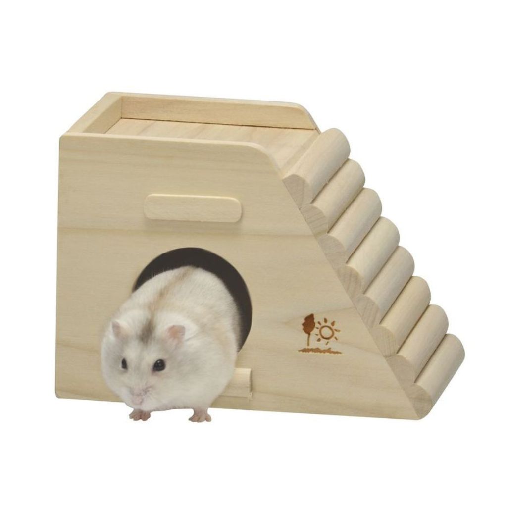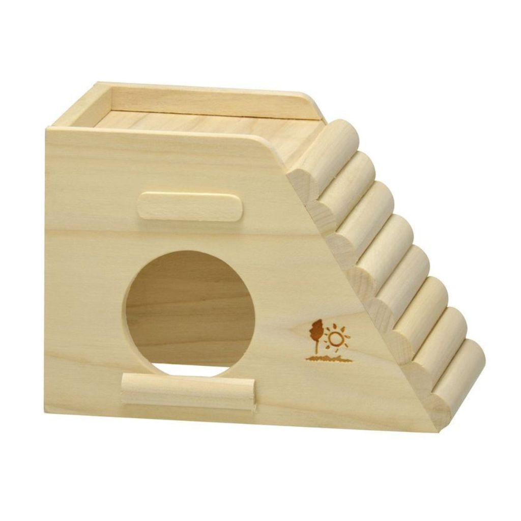 低刺激で人にもハムスターにも優しい広葉樹(ポプラ)材を使用した、ちょっと大きめの木製ハウス。
