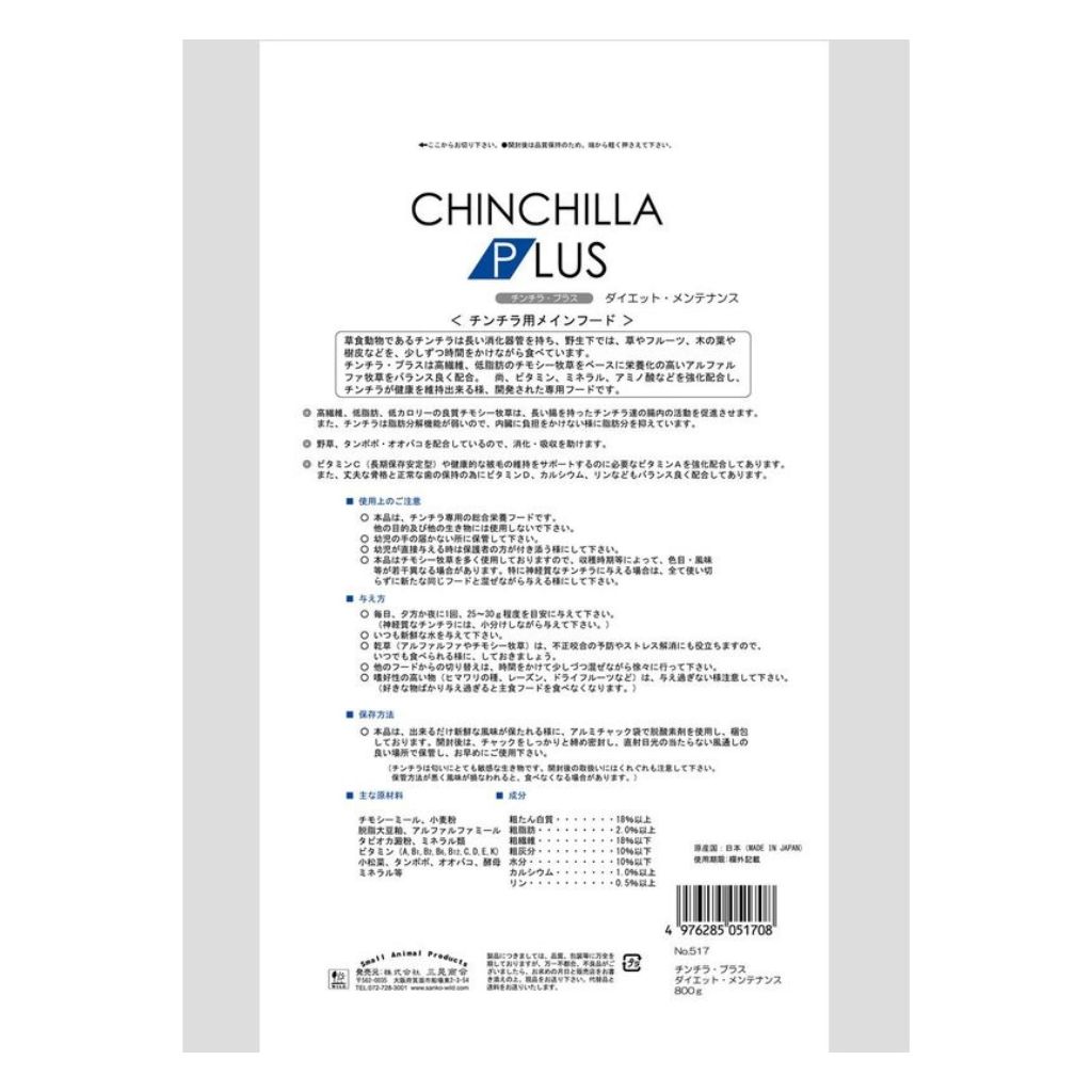 ・本品はチモシー牧草を多く使用しておりますので、収穫時期などによって、色目、風味等が若干異なる場合があります。特に神経質なチンチラに与える場合は、全て使い切らずに新たな同じフードと混ぜながら与えるようにして下さい。
