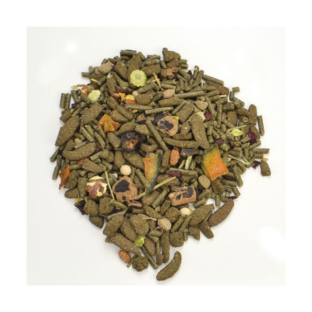 ・栄養供給と食事の楽しみ十数種類の牧草や野草を栄養バランスを考えて配合したペレットと、五感で楽しむ風味豊かな自然素材をブレンド