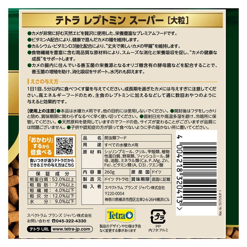 ・ビタミンD3強化配合により、「丈夫で美しいカメの甲羅」を維持します。